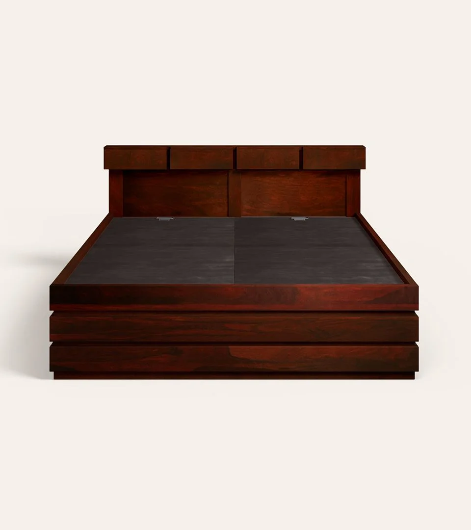 Designed for modern living, it features spacious box storage beneath the mattress—perfect for storing bedding, pillows, seasonal clothes, and essentials while keeping your room clutter-free. The sturdy frame ensures long-lasting support, while the refined headboard design adds a touch of luxury and comfort.